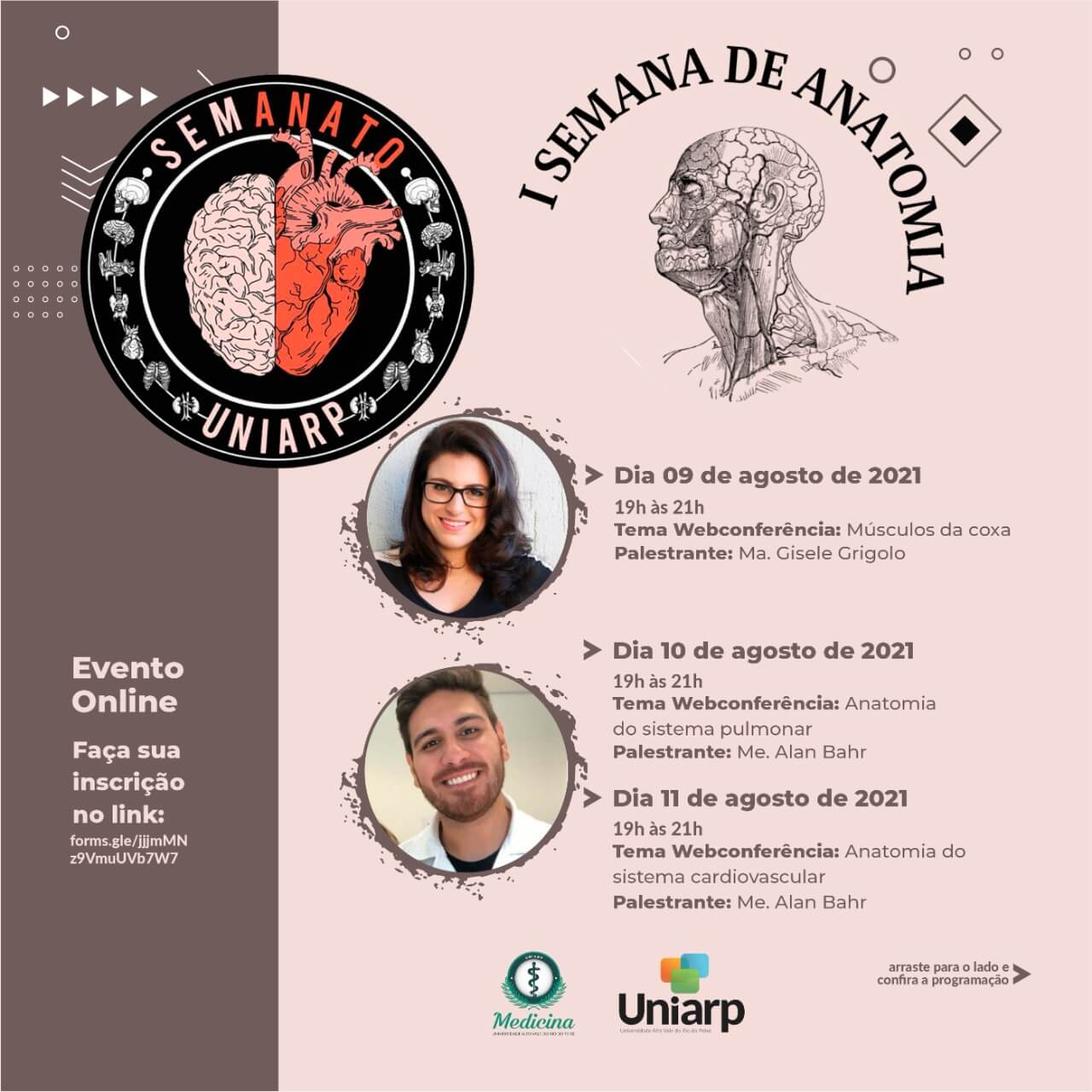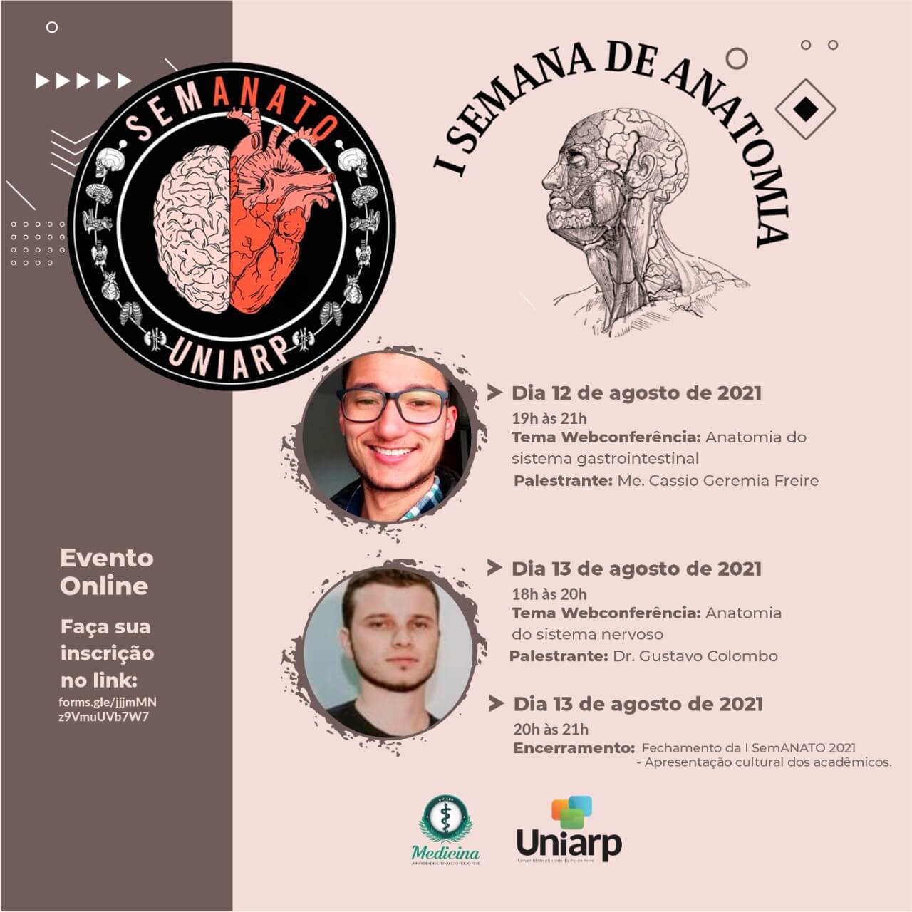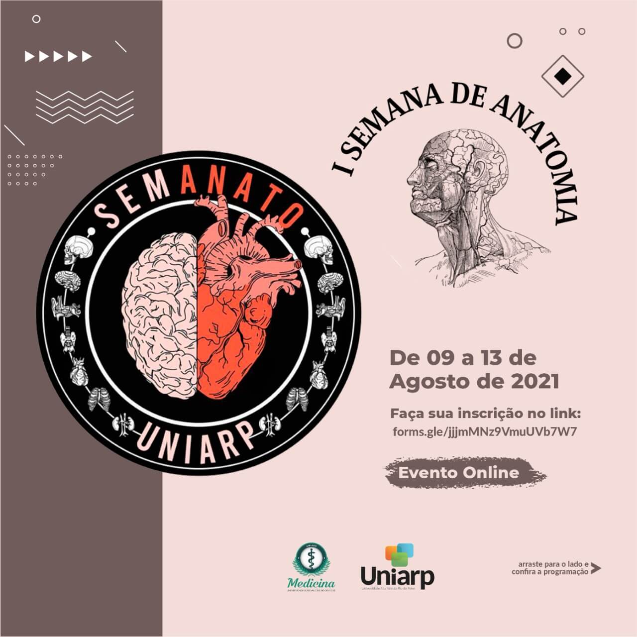 O evento tem como objetivo o estudo atualizado da anatomia do corpo humano, e é recomendado para todos os cursos da saúde. O evento será totalmente on-line e gratuito, e além da atualização acadêmica, ainda incentivamos a doação voluntária de 1kg de alimento não perecível, contribuindo com uma causa social.
